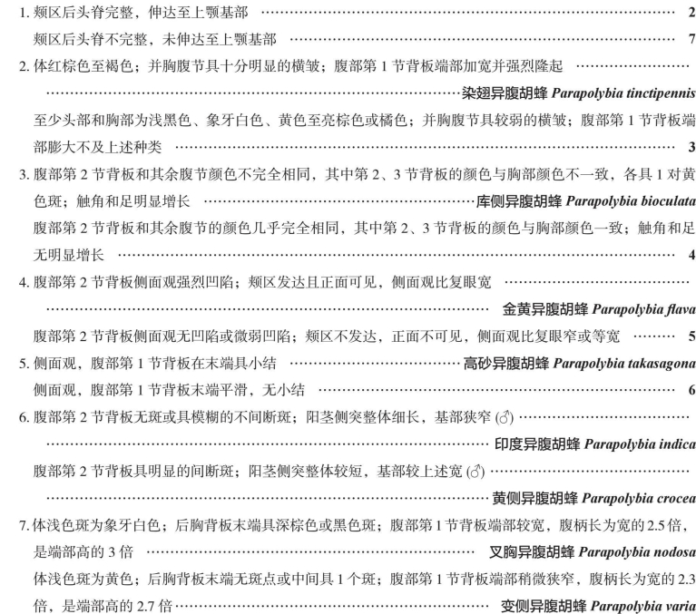 【形态特征】 前胸脊不完整,侧区缺失;前胸背板明显具翅基片前脊;并胸腹节的气孔长约为宽的2倍。腹部第1节基部具柄,端部膨大且明显窄于第2节,第1节长明显大于第2节宽。