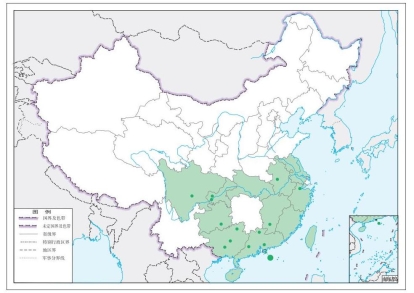 【地理分布】 江苏、安徽(六安)、浙江(杭州)、江西(赣州)、湖北、福建、台湾、广东(云浮、韶关、惠州)、海南、香港、广西(桂林、来宾、南宁)、重庆(沙坪坝、江津)、四川(峨眉山)、贵州(黔东南);印度。