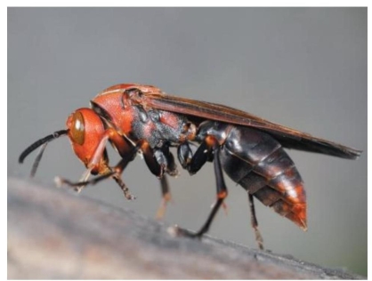 图4-281-2 棕马蜂Polistes (Gyrostoma)gigas雌性头部正面观生态图(安徽金寨 陈尽虫 摄)