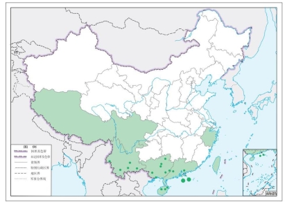 图4-283-3 果马蜂Polistes (Gyrostoma) olivaceus地理分布图