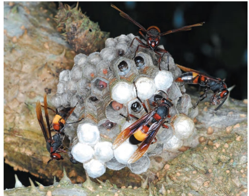 图4-292-4 黄裙马蜂Polistes (Polistella) sagittarius生态图(香港 Christophe Barthélémy 摄)