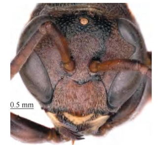 图4-307-2 香港铃腹胡蜂Ropalidia hongkongensis雌性头部正面观