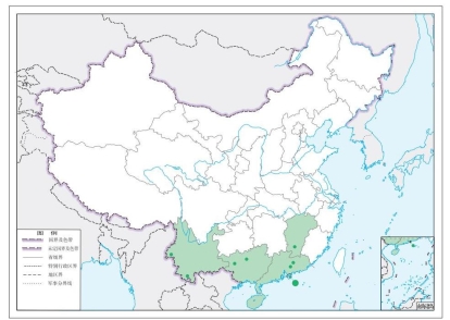 【地理分布】 江西(赣州)、广东(惠州、河源)、广西(河池、百色)、海南、云南(西双版纳、德宏)、香港;印度尼西亚,印度,缅甸,越南。