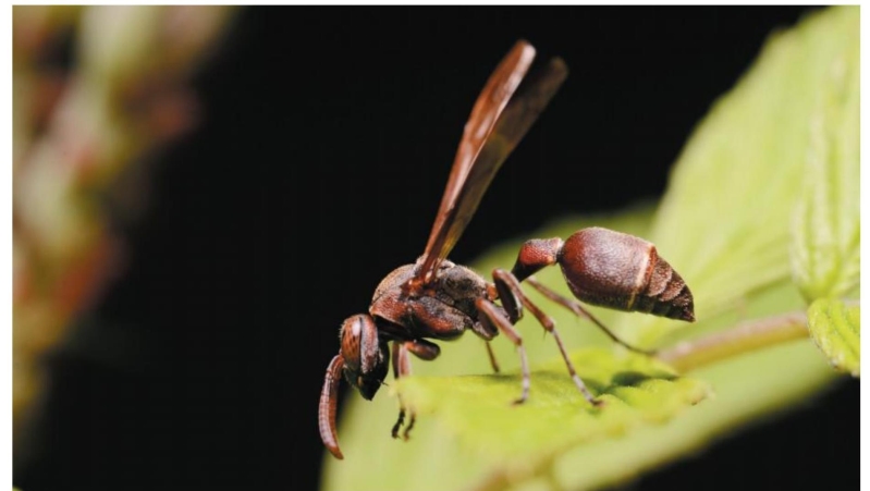 图4-315-4 刻点铃腹胡蜂Ropalidia sculpturata生态图(西藏察隅 陈尽虫 摄)