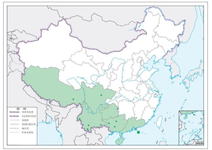 【地理分布】 广东、广西(南宁、百色、河池)、海南、四川(彭州)、贵州(铜仁)、云南(西双版纳、普洱、文山、德宏)、西藏(墨脱)、香港;加里曼丹岛,印度,马来西亚半岛,缅甸,尼泊尔,菲律宾群岛,斯里兰卡,印度尼西亚,泰国,越南。
