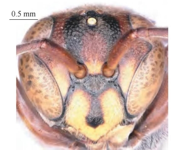 图4-316-2 点铃腹胡蜂Ropalidia stigma雌性头部正面观