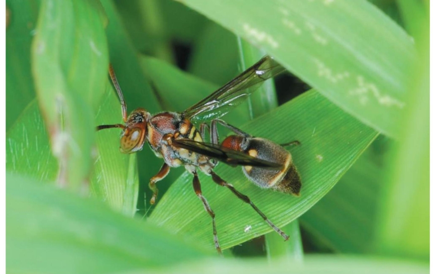 图4-316-6 点铃腹胡蜂Ropalidia stigma生态图2(香港 Christophe Barthélémy 摄)