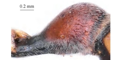 图4-319-3 多色铃腹胡蜂Ropalidia variegata雌性腹部第1节侧面观