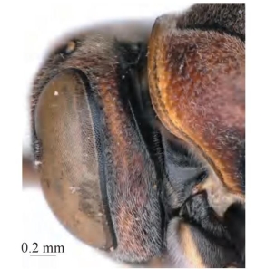 图4-319-4 多色铃腹胡蜂Ropalidia variegata雌性头部及前胸背板侧面观