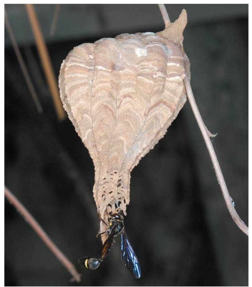 图5-a 黑真狭腹胡蜂Eustenogasternigra生态图(香港 Christophe Barthélémy 摄)