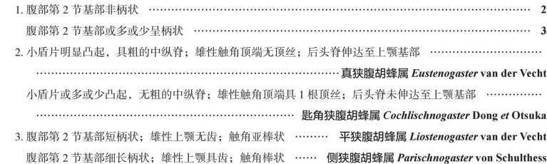 中国狭腹胡蜂亚科Stenogastrinae分属检索表