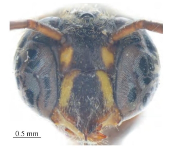 图5-320-3 大渡岗匙角狭腹胡蜂Cochlischnogasterdaduogangensis雌性头部正面观