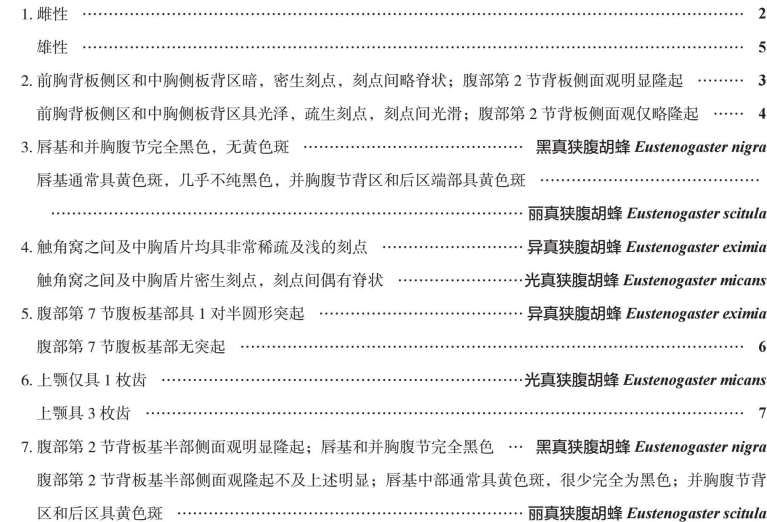 中国真狭腹胡蜂属Eustenogaster分种检索表