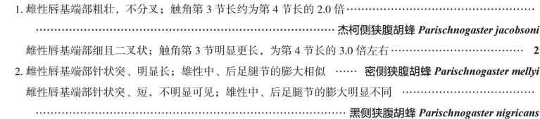 中国侧狭腹胡蜂属Parischnogaster分种检索表