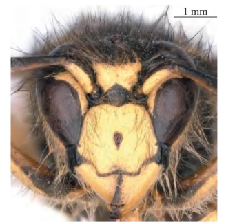 图6-331-3 间长黄胡蜂Dolichovespula intermedia雌性(工蜂)头部正面观