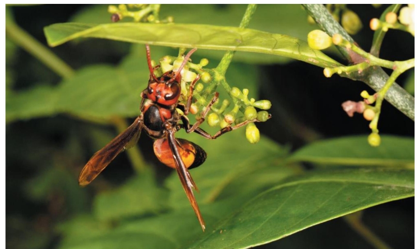 图6-340-5 黄腰胡蜂Vespa affinis生态图1(香港 Christophe Barthélémy 摄)