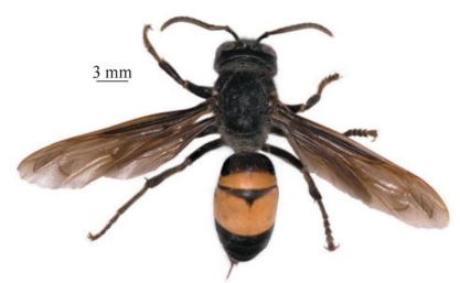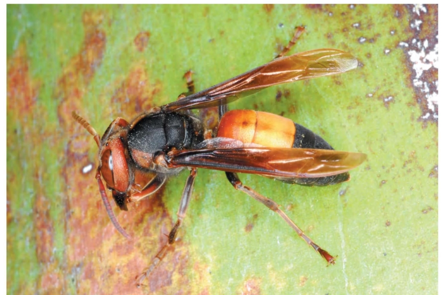 图6-340-2 黄腰胡蜂Vespa affinis雄性(红头型)背面观