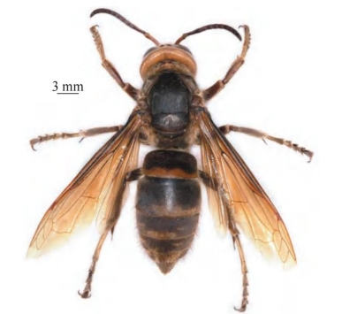 图6-344-2 褐胡蜂Vespa binghami雌性(工蜂)背面观
