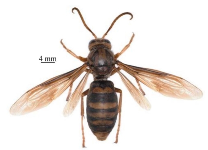 图6-344-4 褐胡蜂Vespa binghami雌性(工蜂,红胸型)背面观