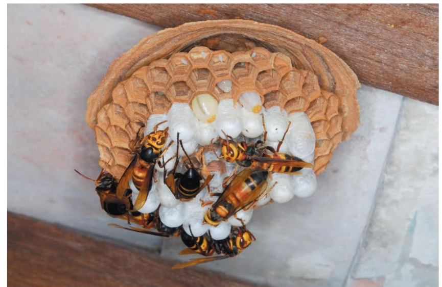 图6-346-6 黑尾胡蜂Vespa ducalis巢群(香港 Christophe Barthélémy 摄)