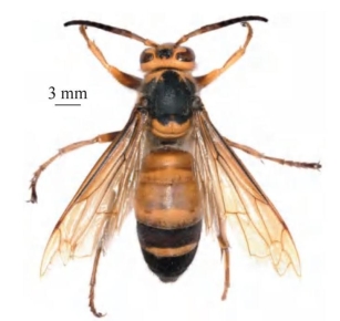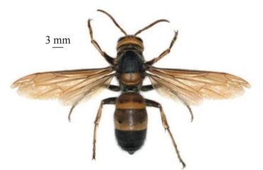 图6-346-1 黑尾胡蜂Vespa ducalis雌性(蜂王)背面观
