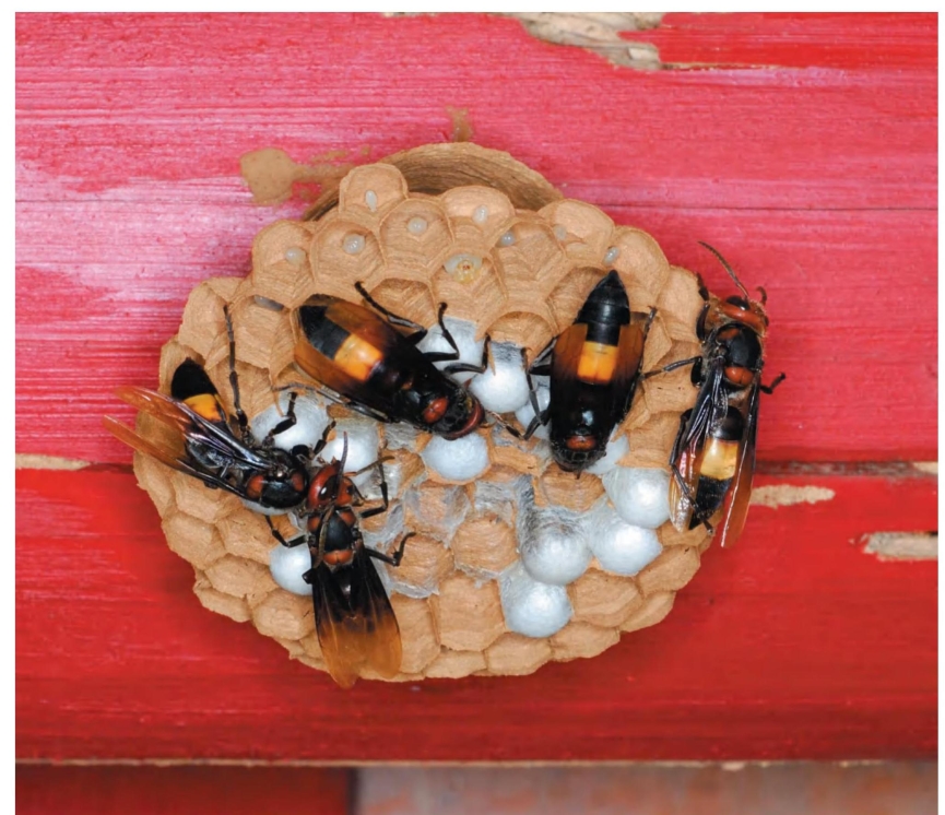 图6-354-6 金箍胡蜂Vespa tropica生态图(香港 Christophe Barthélémy 摄)