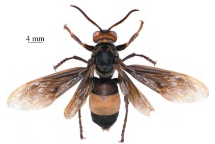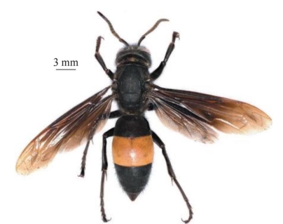 图6-354-1 金箍胡蜂Vespa tropica雌性(工蜂,黑头型)背面观