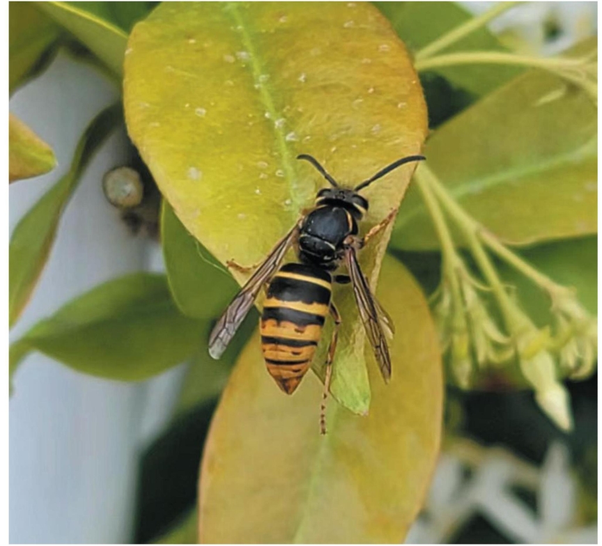 图6-359-5 细黄胡蜂Vespulaflaviceps雌性(蜂王)生态图(河南新乡 何易涔 摄)