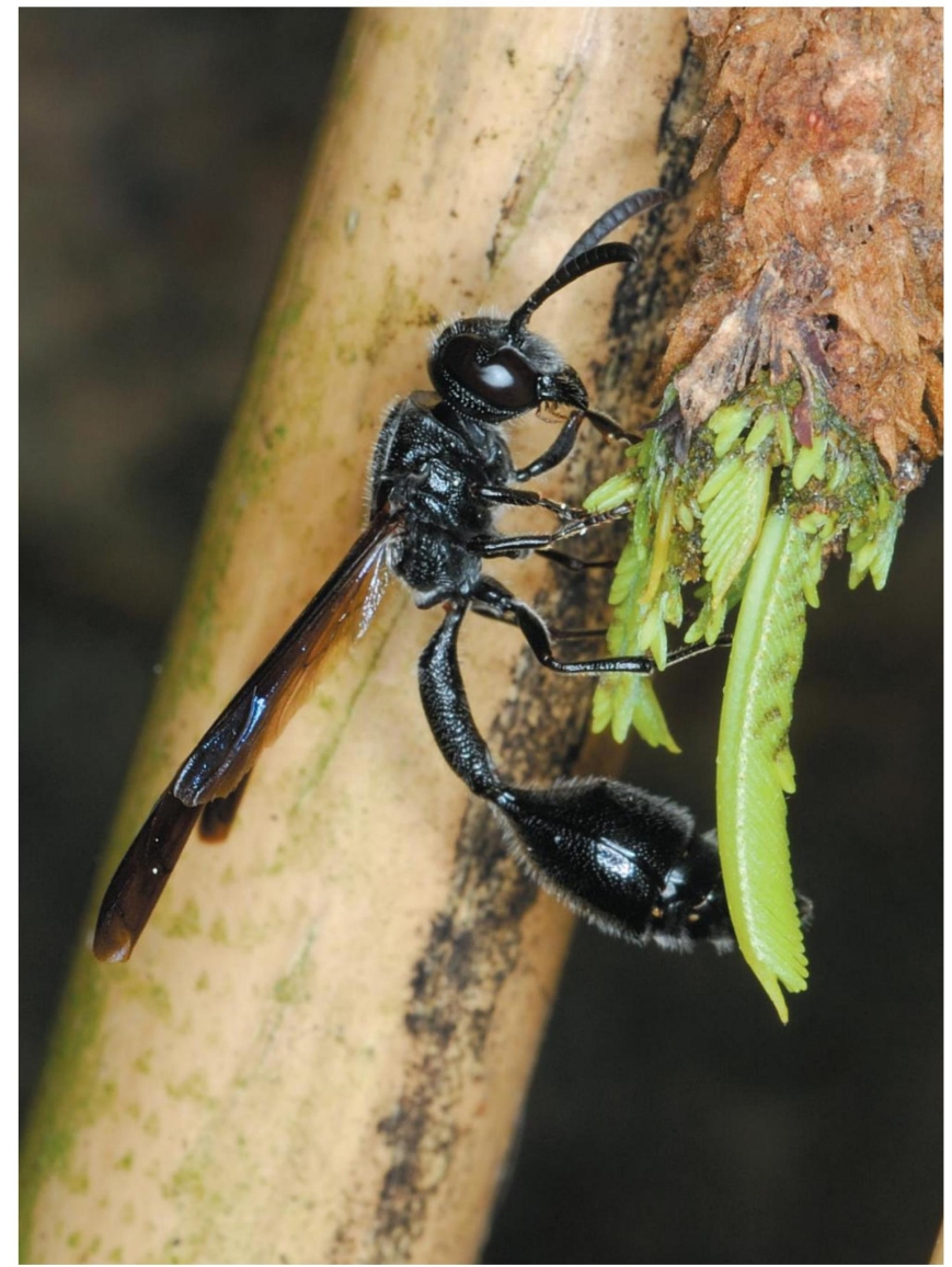 图7-382-6 虚长腹胡蜂Zethus dolosus生态图(香港 Christophe Barthélémy 摄)
