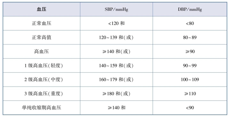 注:当SBP和DBP分属于不同级别时,以较高的分级为准。