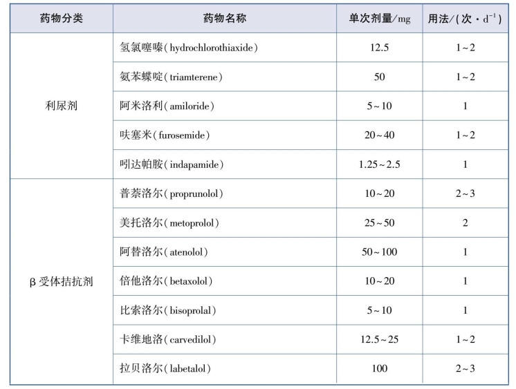 大多数无并发症的患者可单独使用或联合应用降压药,治疗应从小剂量开始。临床上联合应用降压药物已成为降压治疗的基本方法。为达到目标血压水平,大部分高血压患者需要使用2种或2种以上降压药物。