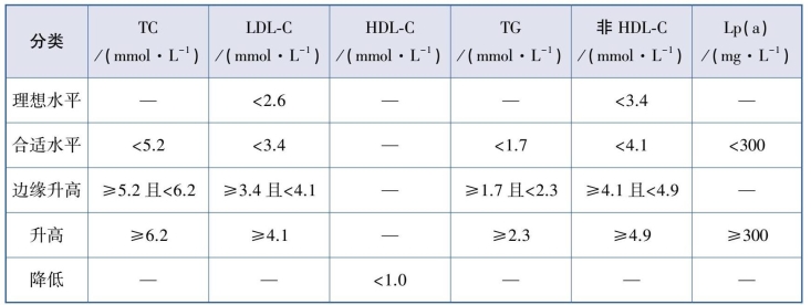 ②*—参考标准仅针对ASCVD一级预防低危人群。表中所列数值是干预前空腹12h测定的血脂水平。