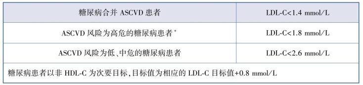 ②*—ASCVD高危的患者指年龄≥40岁的糖尿病患者,20~39岁糖尿病有≥3种危险因素或合并靶器官损害,或者1型糖尿病病程≥20年可作为ASCVD高危。