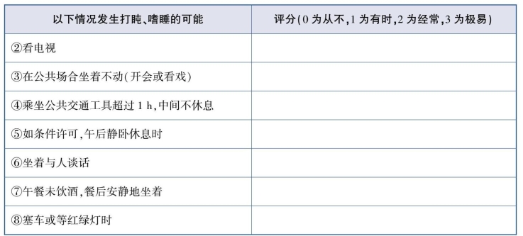 注:8种情况分数相加,总分在1~24分。总分>6分,思睡;总分>10分,明显思睡;总分>16分,严重思睡。