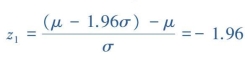 查附表1,φ(-1.96)=0.025。由对称性可得,区间(+1.96,+∞)上的曲线下面积也是0.025,故z值取值于(-1.96,+1.96)的概率为1-2×0.025=0.95,即X取值在区间μ±1.96σ内的概率为95%。