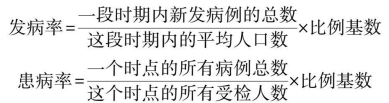 可见,两者在时间、分子和分母要求上均存在差异,故它们的使用不应相同。一般地,发病率是表示发病危险的直接指标,可用于探讨疾病的危险因素,评价疾病防治效果。患病率又称为现患率,用于描述病程较长或发病时间不易明确的疾病的患病情况。