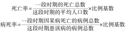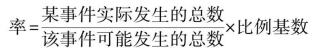 比例基数可以是100%,或1000/1000等。特别要注意分母中“可能发生”的含义。它是指对某病具有发病危险的人,即暴露人口,而不包括不可能发生某病的人。例如,计算宫颈癌发病率,分母应该是可能发生疾病的女性;又如,计算麻疹疫苗接种率,分母一般为既没患过麻疹又没接种过麻疹的儿童。