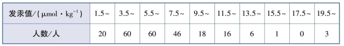 1.研究人员检测某地居民发汞的基础水平,为汞污染的环境监测积累资料,对象为留住该市一年以上,无明显肝、肾疾病,无汞作业接触史的居民230人,其发汞含量见表9.9。