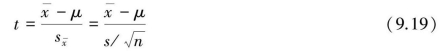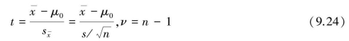 例9.16中,在H0∶μ=μ0的条件下,即矿区新生儿头围总体均数与一般新生儿头围总体均数无差别,来自μ=μ0的总体,又已知样本标准差s和样本含量n,根据t分布原理,t=