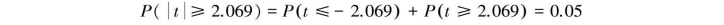 当ν=23,双侧概率α=0.05时,由附表2中查得双侧t0.05/2,23=2.069: