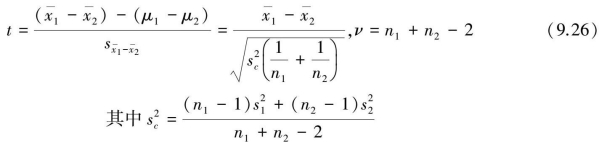 式中,x1和x2为两个样本均数,为两样本均数之差的标准误,sc2为合并方差。