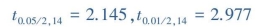 【解】已知n=25,ν=25-1=24,查t界值表:α=0.05时,t0.05/2,24=2.064;α=0.01时,t0.01/2,24=2.797,则