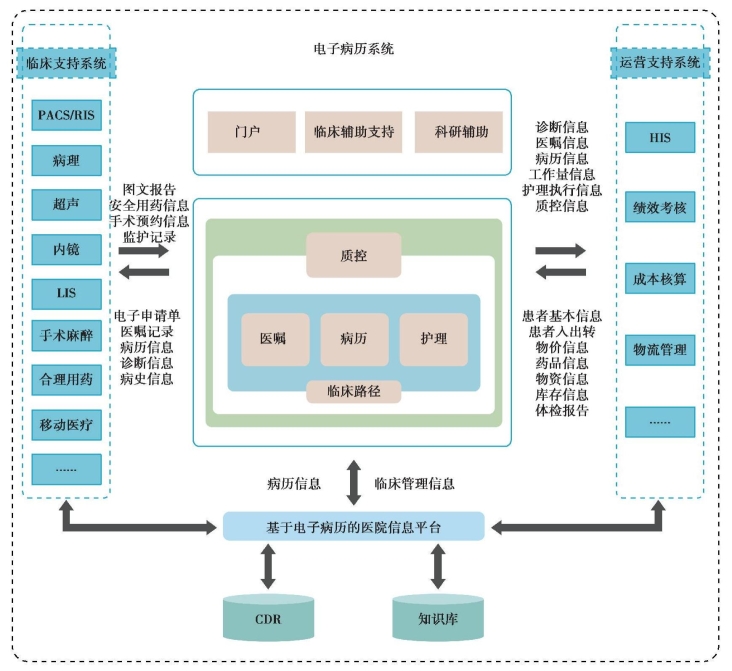 电子病历系统通常与电子健康档案系统(Electronic Health Record,EHR)结合使用。EHR是一种集成的病人记录系统,可以收集并整合病人的跨机构、跨部门的健康信息,实现信息的共享和整合。