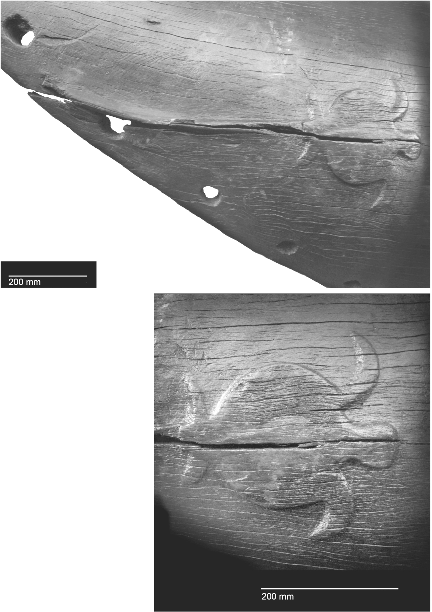 图8.1 浅浮雕海龟,新西兰南岛发掘的东波利尼西亚航海独木舟的局部,放射性碳年代测定确定年代为约公元1400年。© Dilys Johns.