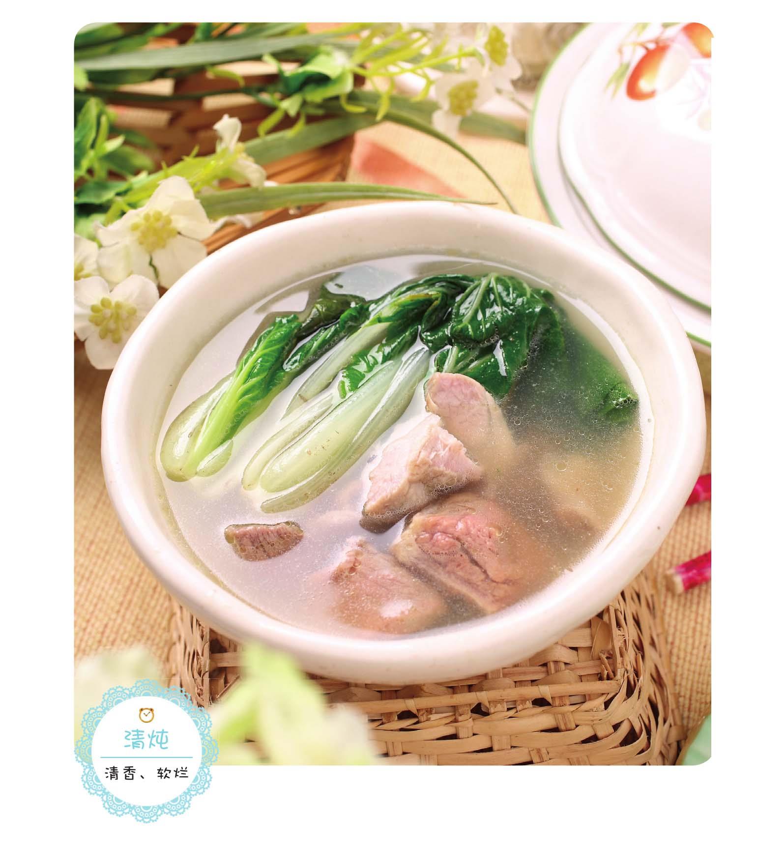 3 汤锅内加入猪肉片、蜜枣,转小火煮约10分钟至熟烂,然后加入精盐调味,出锅倒在汆烫好的奶白菜上即可。