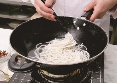 2 坐锅点火,加入清水烧开,先下入面条煮熟,再捞出过凉,沥干装碗,然后加入猪油、料酒拌匀待用。