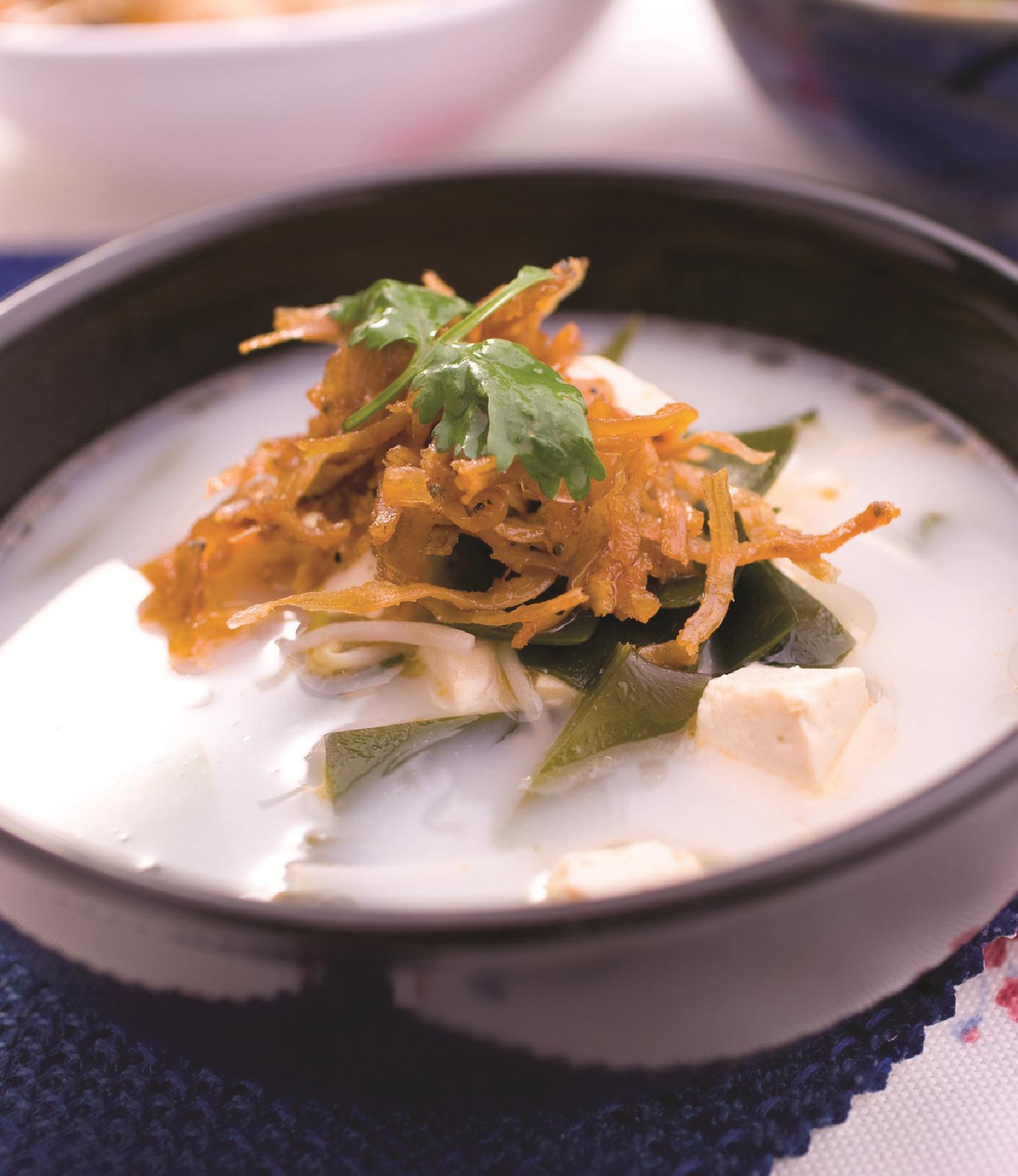 葱末、姜末、酱油各10克,精盐1小匙,猪骨汤400克,香油2小匙,植物油3大匙。