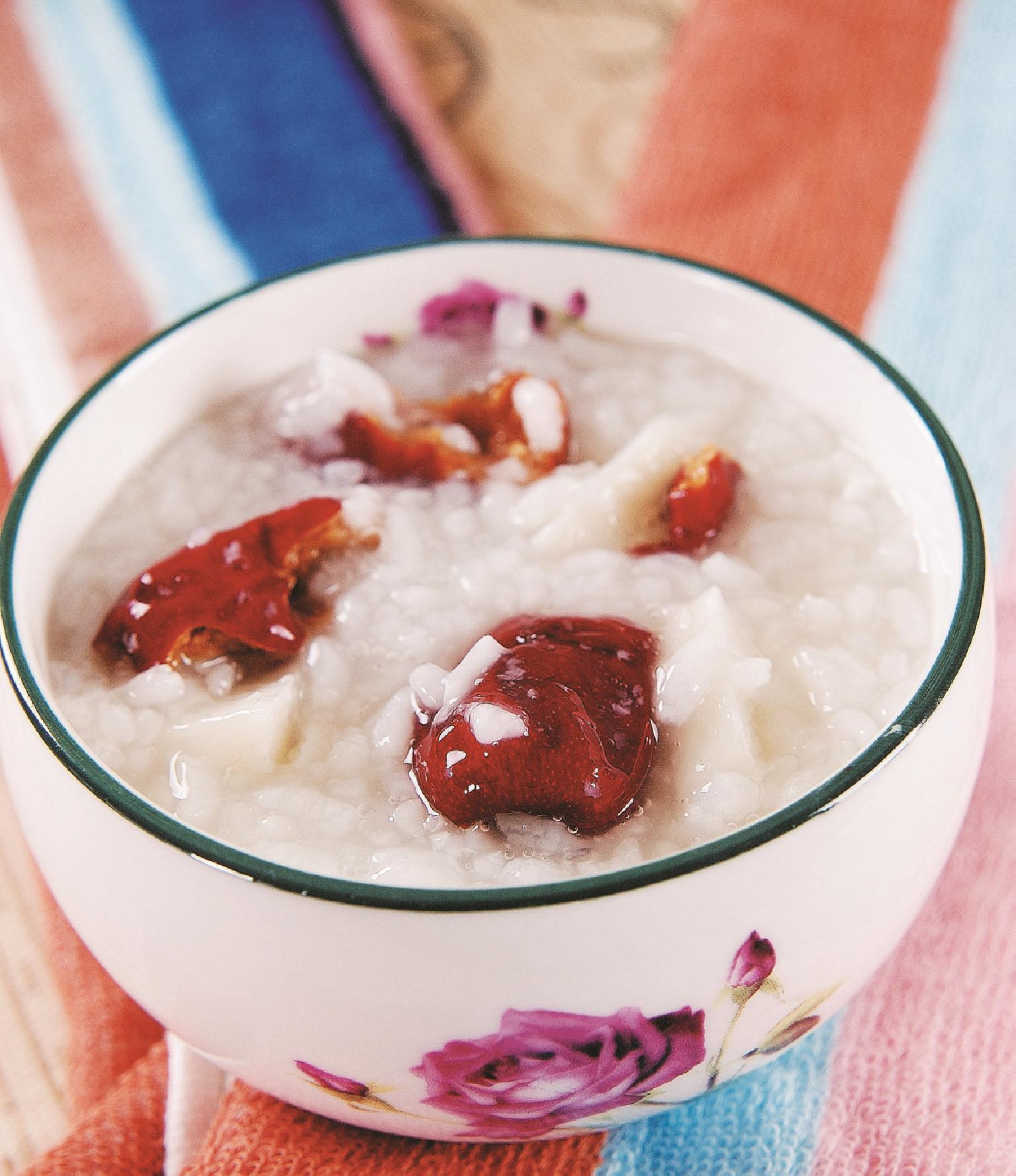1 将大米淘洗干净;红枣洗净;山药去皮、洗净,切片备用。