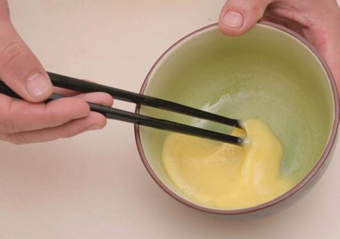 1 鸡蛋磕入碗中,用筷子搅打均匀;粉丝放入温水中浸泡至软,再用清水洗净,切成小段。