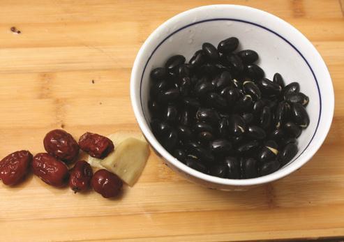 2 黑豆提前半天放入清水中浸泡,再洗净沥水;红枣洗净,去核。